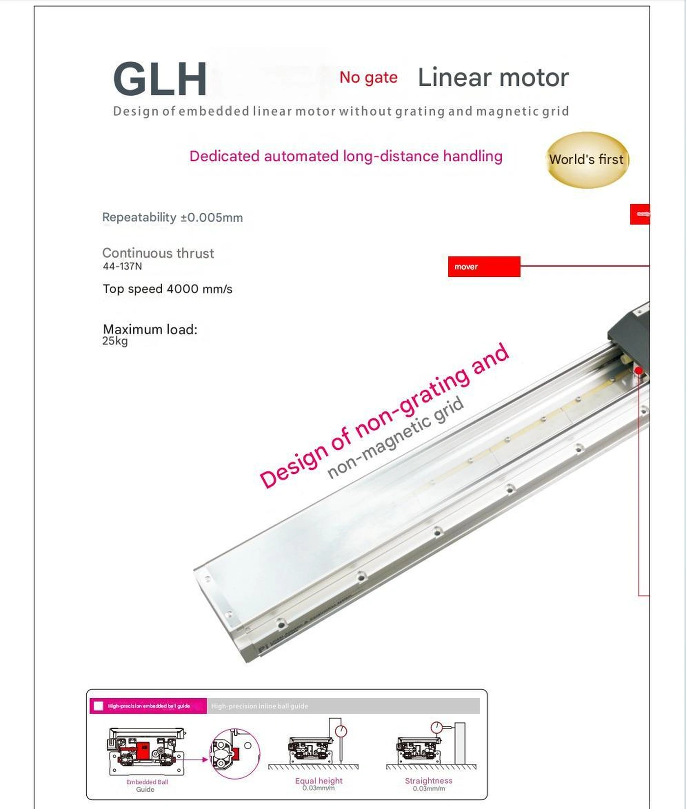 GLH Series Embedded Linear Motor offers high-speed, high-thrust performance with a compact design, eliminating the need for encoders, ideal for precise automation and positioning applications.